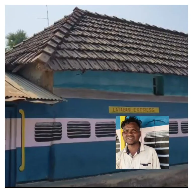 दुमका। आदिवासी युवक ने बेहतरीन कला का प्रदर्शन करते हुए अपने साधारण घर को ट्रेन की बोगी का लुक दे दिया है। अपने घर का नाम लताबानी एक्सप्रेस रखा है। आदिवासी युवक सोमराज मरांडी ने अपने घर बाहर से किसी रेलगाड़ी के बोगी सा लुक दे दिया। सोमराज का सपना है कि एक ट्रेन उसके गांव से होकर भी गुजरे, ताकि उसके बच्चे और गांव के लोग यह देख सके कि वास्तव में भारतीय रेलवे का ट्रेन होता कैसा है।