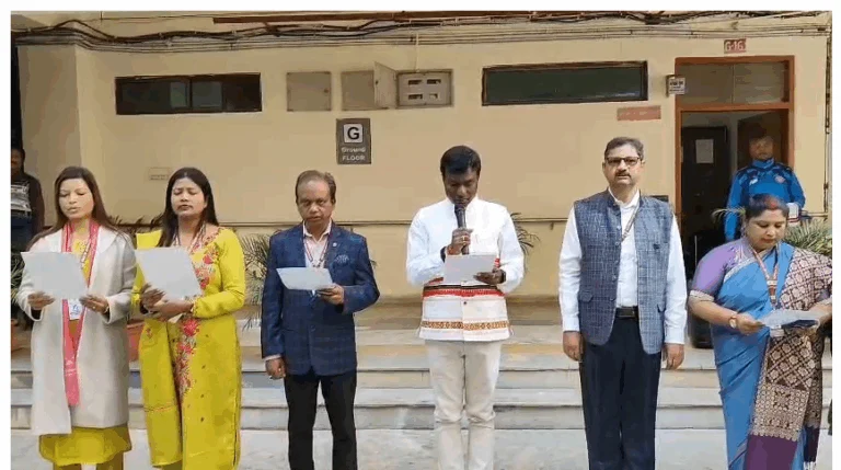 रांची : भारत का संविधान लागू होने के 75वें वर्ष (प्लैटिनम जुबिली वर्ष) पर बुधवार को रांची में संविधान दिवस हर्षोल्लास एवं गरिमा के साथ मनाया गया. रांची जिला प्रशासन द्वारा समाहरणालय ब्लॉक-A स्थित पोर्टिको में कार्यक्रम का आयोजन किया गया.