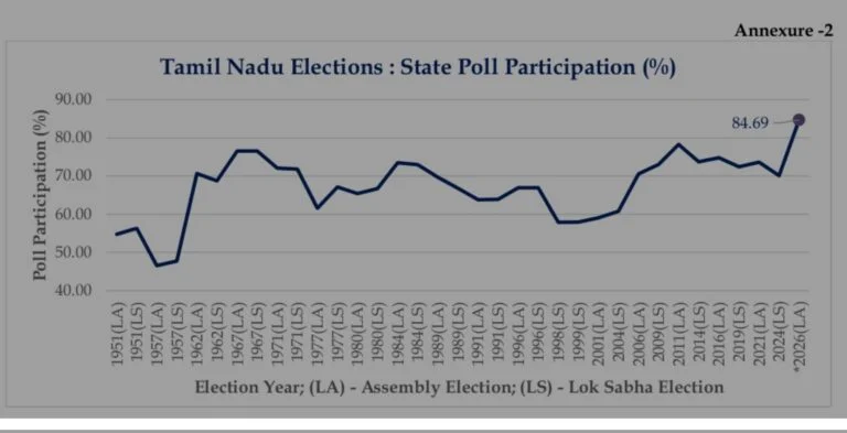 - तमिलनाडु: पुरुष 83.57%, महिला 85.76%, तृतीय लिंग 60.49%