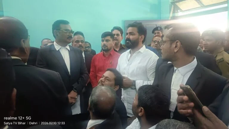 डेहरी आन सोन: रोहतास जिले के डेहरी अनुमंडल व्यवहार न्यायालय के अनुमंडलीय न्यायिक दंडाधिकारी रजत दीप के न्यायालय में आचार संहिता उल्लंघन मामले में भोजपुरी सुपर स्टार पवन सिंह आज प्रस्तुत हुए न्यायलय से जमानत मिल गईl भोजपुरी के पावर स्टार के नाम से चर्चित भोजपुरी अभिनेता सह गायक पवन सिंह वाई प्लस की सुरक्षा के साथ न्यायलय परिसर में पहुंचे। कोर्ट के कैम्पस में जाने से पहले ही मीडियाकर्मी पवन सिंह का फोटो वीडियो शूट करने लगे। तो उनके बाउंसर ने रोकने की कोशिश की।एक मीडिया कर्मी को तो कैमेरा छीनने की धमकी तक दी गई,जिसके बाद सुरक्षाकर्मियों से तीखी नोंक झोंक हुई।