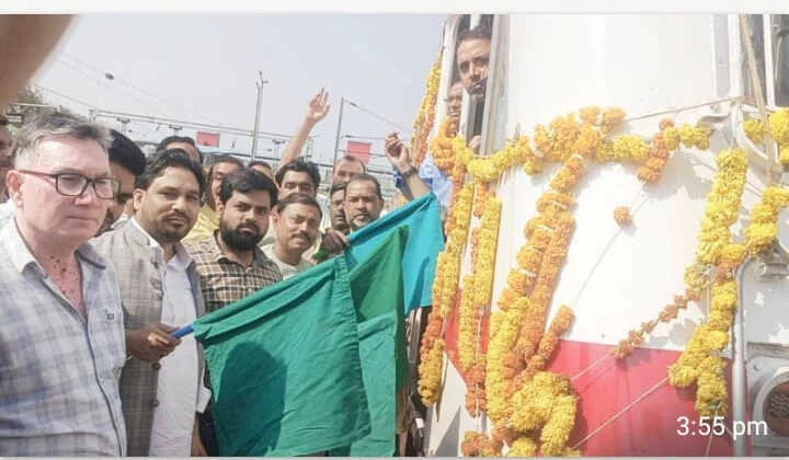 पलामू। सांसद विष्णु दयाल राम के प्रयास से धनबाद से भोपाल तक जाने वाली त्रि- साप्ताहिक ट्रेन भोपाल धनबाद एक्सप्रेस (01631/01632) का बुधवार को शुभारम्भ किया गया। ट्रेन को डालटेनगंज रेलवे स्टेशन पर सांसद प्रतिनिधि विजय ओझा और सांसद के निजी सचिव अलख दुबे ने हरी झंडी दिखाकर रवाना किया।