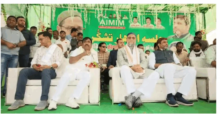 किशनगंज : बिहार में सीमांचल से AIMIM के 5 प्रत्याशियों ने जीत हुई. जीत के बाद पार्टी सुप्रीमो असदुद्दीन ओवैसी ने शनिवार को कोचाधामन के रहमतपाड़ा ईदगाह मैदान पहुंचकर जनसभा को संबोधित किया. उन्होंने हजारों मतदाताओं को सरवर आलम को जीत दिलाने के लिए धन्यवाद देते हुए उनका हाथ जोड़कर अभिवादन किया.