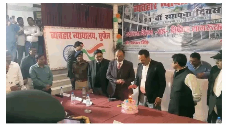 सुपौल : जिला व्यवहार न्यायालय का 11वां स्थापना दिवस शनिवार की शाम जिला न्यायालय परिसर में गरिमामय एवं उत्साहपूर्ण वातावरण में मनाया गया. कार्यक्रम का आयोजन जिला एवं सत्र न्यायाधीश-सह-अध्यक्ष, जिला विधिक सेवा प्राधिकार सुपौल अनंत सिंह के मार्गदर्शन में हुआ.