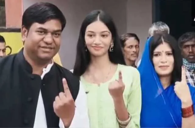 DARBHANGA : बिहार विधानसभा चुनाव 2025 के मतदान के दौरान विकासशील इंसान पार्टी (VIP) के प्रमुख मुकेश सहनी ने अपने मताधिकार का प्रयोग किया, इस मौके पर वे पूरे परिवार के साथ मतदान केंद्र पहुंचे। वोट डालने के बाद सामने आई तस्वीर में सहनी के साथ दो महिलाएं नजर आ रही हैं, जिन्होंने लोगों का ध्यान अपनी ओर खींच लिया। तस्वीर में मुकेश सहनी के ठीक बगल में दिख रही लड़की उनकी बेटी मुस्कान सहनी हैं, जबकि उनके पास नीले रंग की साड़ी में नजर आ रहीं महिला उनकी पत्नी हैं।